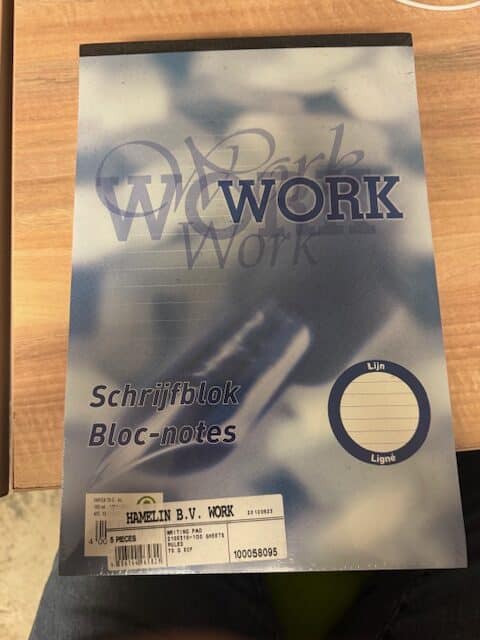 5 x schrijfblok (bloc notes) Gewicht: 70gr Aantal vellen: 5 x 100 vel Met lijnen