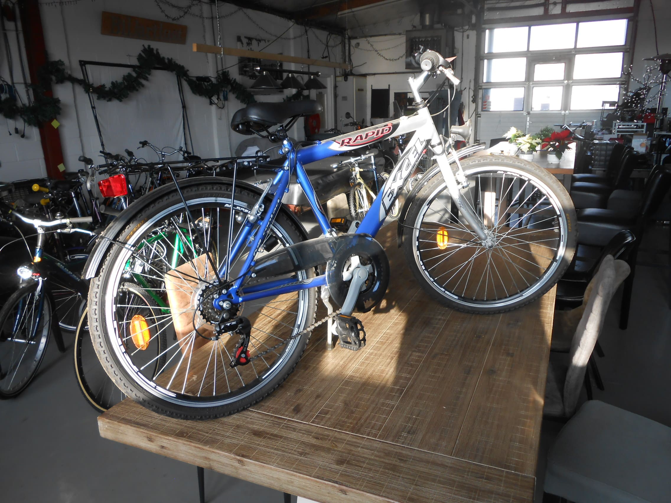 dit is een een nieuwe mountainbike van het merk rapid excel met 6 versnellingen